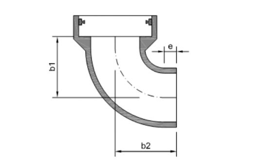 Les valeurs b1 et b2 sont des valeurs de référence. Les coudes 90° sont utilisés pour le raccordement de colonnes de chute. Ils ne sont pas autorisés sur les conduites enterrées. Mesures restantes et résistance à l'écrasement comme les tuyaux. Diamètres plus grands sur demande.